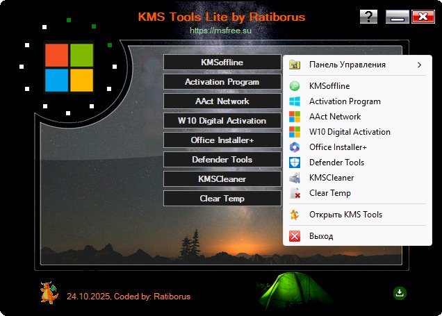 KMS Tools — это облегчённая портативная версия популярного сборника утилит от Ratiborus, объединённых в одной удобной оболочке. Программа не требует установки и полностью готова к использованию сразу после запуска. Все инструменты доступны напрямую из единого интерфейса, что делает работу максимально быстрой и комфортной. Для каждого компонента имеется подробное описание на русском языке, а при нажатии на значок вопроса рядом с названием утилиты отображается подробная справка и назначение программы.