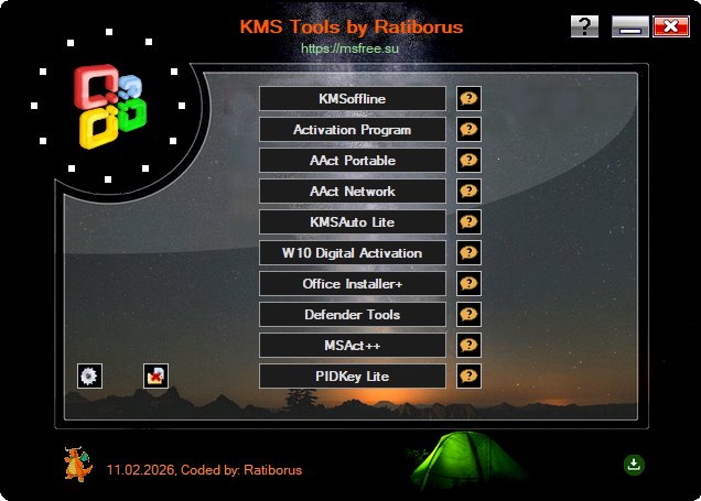 KMS Tools — это облегчённая портативная версия популярного сборника утилит от Ratiborus, объединённых в одной удобной оболочке. Программа не требует установки и полностью готова к использованию сразу после запуска. Все инструменты доступны напрямую из единого интерфейса, что делает работу максимально быстрой и комфортной. Для каждого компонента имеется подробное описание на русском языке, а при нажатии на значок вопроса рядом с названием утилиты отображается подробная справка и назначение программы.