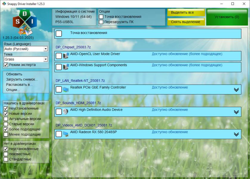 Примечание: SDI использует файлы из официальных паков, поэтому в резервной копии могут присутствовать дополнительные компоненты, не относящиеся напрямую к вашим устройствам. Это нормальное поведение.
