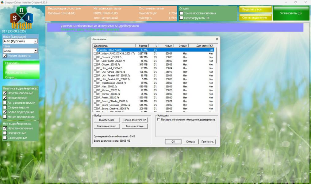 Пользователь волен удалить любой из драйвер-паков, более того — допустима элиминация сразу нескольких пакетов, руководствуясь индивидуальными потребностями и спецификой решаемых задач. Статистически наименьшим спросом пользуются серверные редакции драйверов графических адаптеров; для значительной части пользователей утратили актуальность драйверные наборы под операционную систему Windows XP; для корректной работы ноутбуков, как правило, предпочтительнее обращаться к оригинальным драйверам, предоставляемым непосредственно вендором оборудования, и так далее. Ввиду вышеизложенного рекомендуется внимательно ознакомиться с содержимым спойлера «Драйверпаки, входящие в состав раздачи» и осуществить осознанную селекцию. Post Scriptum. Бинарный файл, расположенный по пути indexes/SDI, даже в случае удаления соответствующего драйвер-пака допустимо не удалять — занимаемый им объём дискового пространства исчисляется ничтожно малыми величинами.