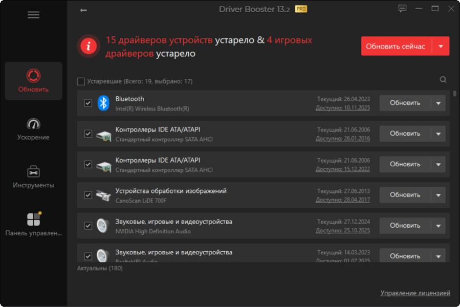 Driver Booster — это утилита для автоматического поиска устаревших драйверов, их загрузки и установки одним щелчком мыши, что существенно экономит ваше время. Программа специально разработана для оптимизации драйверов с целью повышения производительности в играх и обеспечении стабильной работы ПК. Она помогает предотвратить сбои оборудования, конфликты драйверов и непредвиденные ошибки системы.