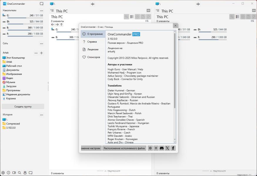 OneCommander V3 — современный файловый менеджер, разработанный для пользователей операционных систем Windows десять и Windows одиннадцать. Программа объединяет множество продуманных возможностей: вкладки для работы с несколькими каталогами одновременно, двухпанельный просмотр, колонковая навигация, встроенный просмотр содержимого файлов, поддержка сменных тем оформления, пометка элементов цветом и многое другое. Приложение распространяется бесплатно для домашнего использования и не содержит рекламных модулей.