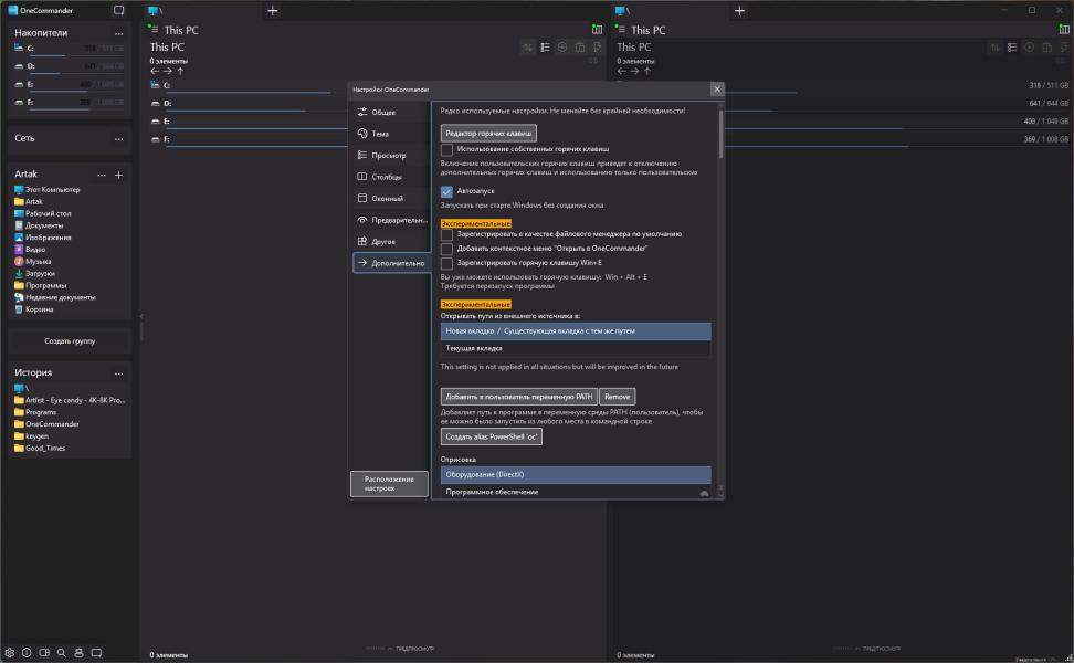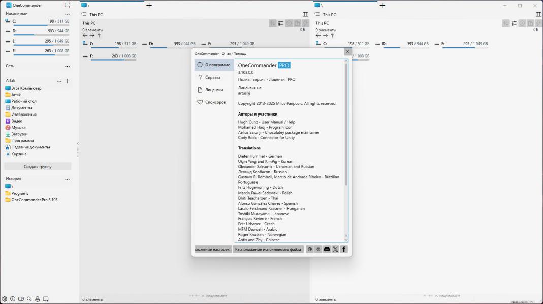 OneCommander V3 — современный файловый менеджер, разработанный для пользователей операционных систем Windows десять и Windows одиннадцать. Программа объединяет множество продуманных возможностей: вкладки для работы с несколькими каталогами одновременно, двухпанельный просмотр, колонковая навигация, встроенный просмотр содержимого файлов, поддержка сменных тем оформления, пометка элементов цветом и многое другое. Приложение распространяется бесплатно для домашнего использования и не содержит рекламных модулей.