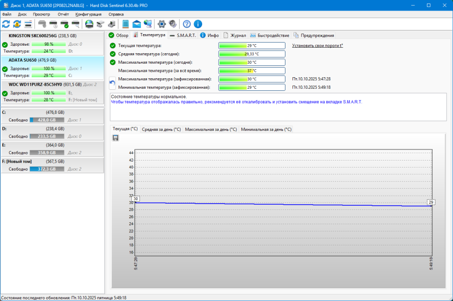 Раннее предупреждение и резервное копирование: программа уведомляет пользователя о проблемах до того, как они приведут к потере данных, что позволяет своевременно создавать резервные копии. Hard Disk Sentinel сохраняет историю температур диска, фиксирует критические значения и прогнозирует возможные отказы, обеспечивая надежность хранения информации.