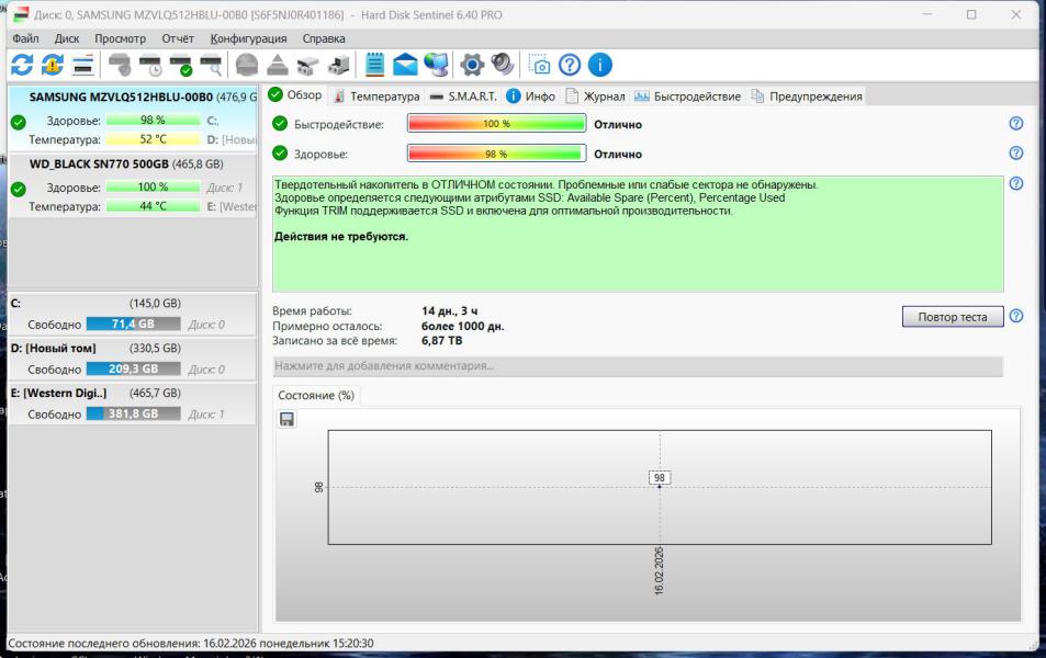 Hard Disk Sentinel Pro представляет собой превосходный программный инструмент, предназначенный для всестороннего мониторинга состояния и контроля работоспособности HDD и SSD накопителей. В современном мире как никогда важна информация, хранящаяся на этих устройствах. Автор неоднократно сталкивался с ситуациями, когда пользователи пренебрегали созданием резервных копий ценных файлов, а впоследствии сильно сожалели об их утрате. Задумайтесь сами — результаты многолетней работы, семейный архив фотографий и видеозаписей, а также прочая информация, представляющая для вас несомненную ценность, может исчезнуть в одно мгновение из-за внезапного отказа накопителя. Услуги по восстановлению данных в наши стоят немалых денег, поэтому гораздо разумнее заранее предотвращать подобные ситуации, сохраняя копии важных данных на других физических носителях и в облачных сервисах. Hard Disk Sentinel наглядно продемонстрирует текущее состояние здоровья ваших дисков и подскажет, не пришло ли время заменить какие-либо из них, чтобы избежать потери информации. В состав программы входят планировщик заданий, средства формирования отчётов и различные тесты для углублённой диагностики. Позаботьтесь о сохранности ваших файлов уже сегодня.