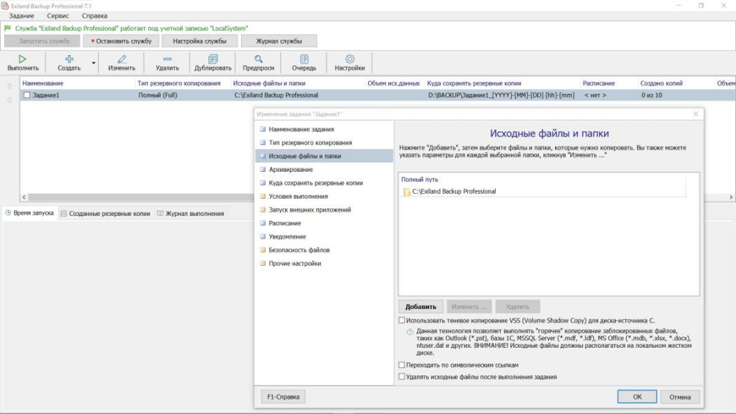 Автоматическое создание резервных копий файлов и папок по расписанию либо по инициативе пользователя
