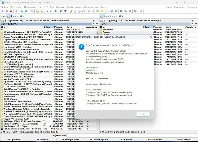 16-02-2026, 16:09, Файлы и дискиTotal Commander — это один из самых надёжных и функциональных файловых менеджеров для Windows с продуманным интерфейсом для пользователя. Он сохраняет традицию двухпанельного подхода, но предлагает расширенные возможности, повышающий удобство работы. Программа поддерживает плагины, включает множество встроенных утилит, а также предлагает просмотрщики мультимедиа и графических файлов, инструменты для работы с архивами, многофункциональный FTP-клиент для многопоточной передачи данных и множество других функций, необходимых для продуктивной работы с файлами.
