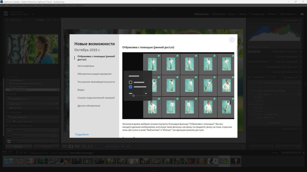 Adobe Lightroom — это профессиональная система для управления, редактирования и каталогизации фотографий, созданная специально для фотографов, ценящих точность, скорость и гибкость рабочего процесса. Программа объединяет изображения в так называемые «коллекции» — виртуальные наборы, которые позволяют мгновенно находить нужные снимки по ключевым словам, тегам и метаданным. В отличие от классических файловых браузеров, Lightroom использует мощную базу данных SQLite, хранящую сведения о каждом кадре, даже если сам файл находится на внешнем носителе или архивном диске.