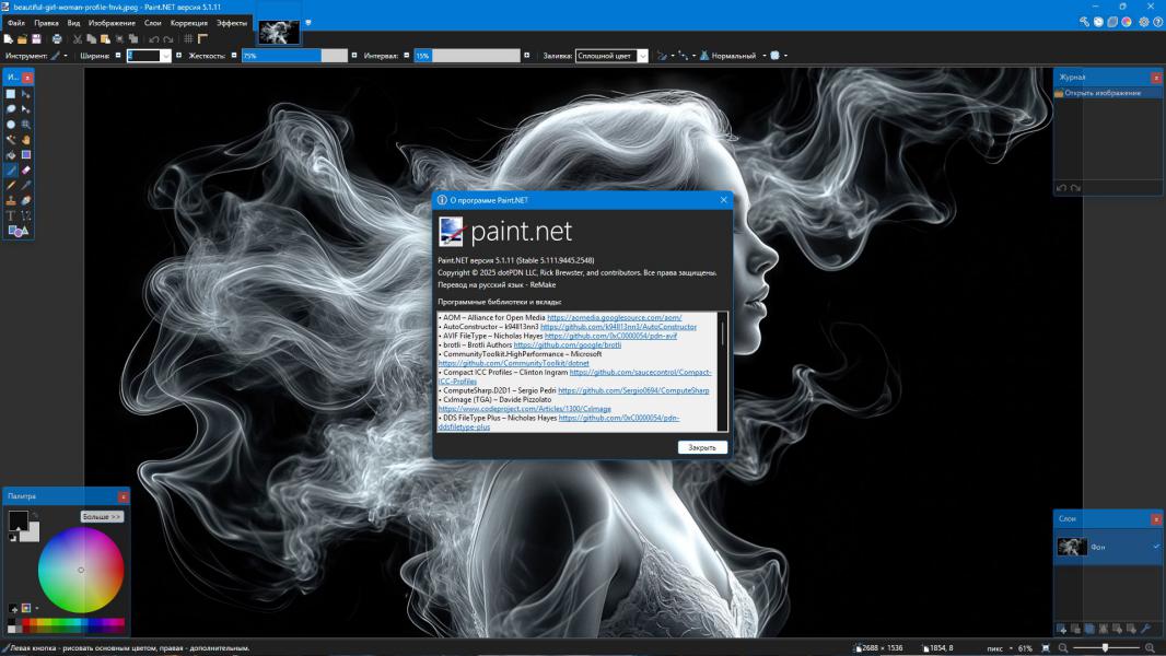 Paint.NET — это современный, лёгкий и при этом функционально богатый графический редактор, созданный как продвинутая альтернатива стандартному приложению MS Paint, входящему в состав Windows. Программа сочетает простоту использования с возможностями, характерными для профессиональных редакторов. Поддерживаются популярные форматы изображений: BMP, JPEG, PNG, TIF, GIF, TGA, а также собственный формат PDN. Приложение позволяет работать со слоями, использовать разнообразные эффекты, подключать сканеры и камеры, устранять эффект «красных глаз», а также масштабировать изображения с точностью от 1% до 3200%. Благодаря системе плагинов возможности Paint.NET можно значительно расширить.