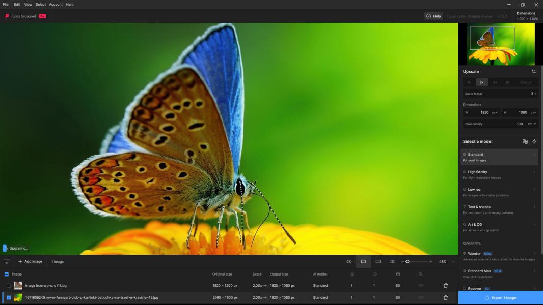 Aiarty Image Enhancer (с генеративным ИИ) — это продвинутая утилита для интеллектуального улучшения изображений, созданная компанией Digiarty Software. Она применяет современные нейросетевые алгоритмы, которые помогают повышать качество и разрешение снимков, сохраняя естественные текстуры и реалистичность деталей. Работа программы сводится к максимально удобному процессу: загрузите изображение, подберите нужную ИИ-модель и уровень масштабирования, после чего получите обновлённый вариант без лишних действий.