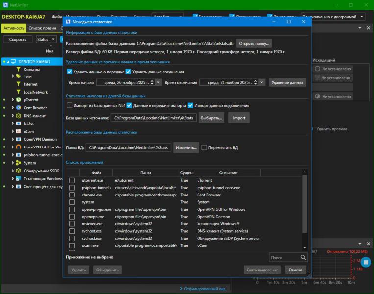 DU Meter — это приложение для точного учёта объёма входящего и исходящего сетевого трафика в реальном времени. Программа предназначена для пользователей, которым важно детально отслеживать использование сети: она предлагает гибкие настройки лимитов и уведомлений о времени подключения по модему, формирует детализированную статистику с ежедневной, еженедельной и ежемесячной привязкой как по объёму переданных данных, так и по длительности соединений, обеспечивает экспорт отчётов в распространённые форматы для дальнейшей обработки и может автоматически завершать работу компьютера при снижении сетевой активности ниже установленного порога. Отдельной особенностью является прогнозирование ожидаемого трафика на предстоящую неделю или месяц на основании накопленных данных.