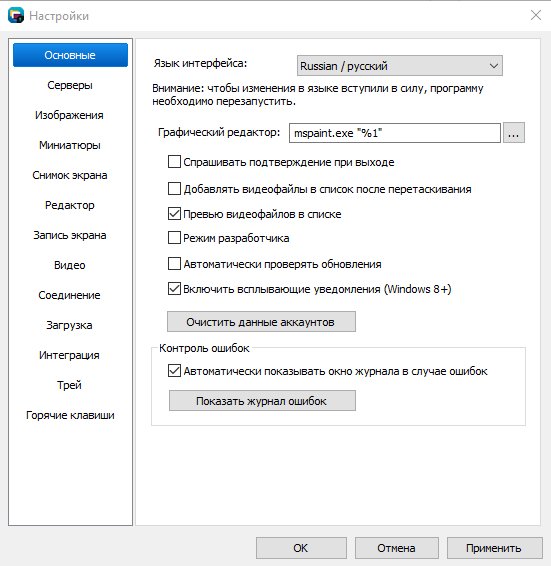 Программа предоставляет широкие возможности персонализации. Пользователь может назначить горячие клавиши для создания скриншотов, загрузки данных из буфера обмена или сокращения ссылок. Также поддерживается работа с несколькими учетными записями одного и того же сервиса, что позволяет, например, использовать личный и рабочий аккаунты облачных хранилищ без необходимости постоянного входа и выхода.