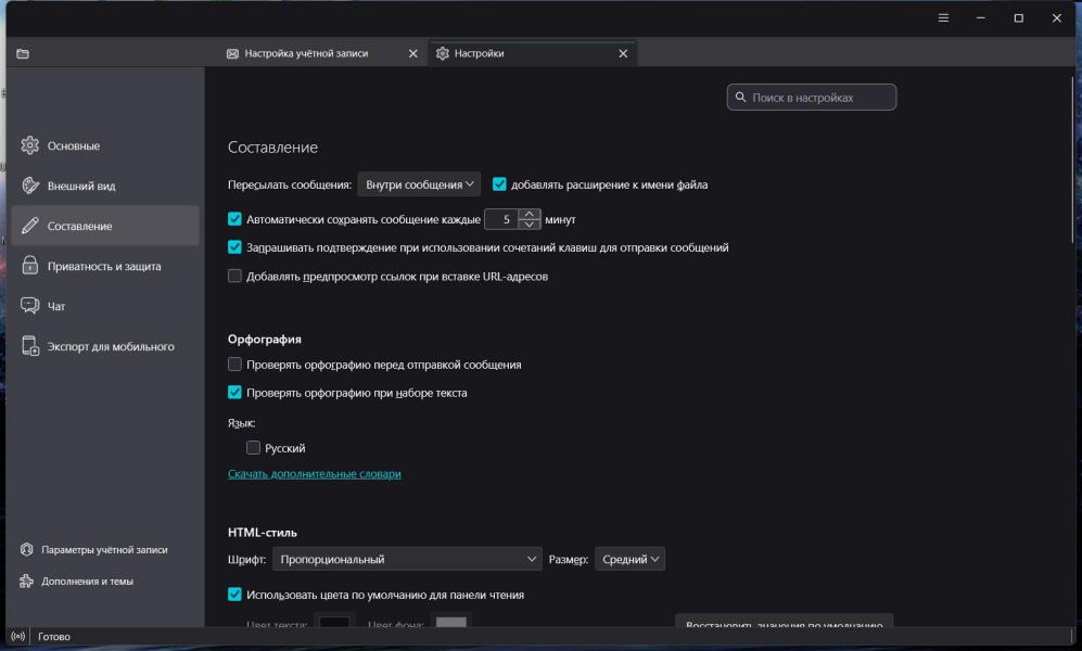 Поддержка системы вкладок Если вам нравится работа с вкладками в браузере Firefox, то вы обязательно оцените аналогичную функциональность и в Thunderbird. Эта возможность позволяет загружать письма в отдельных вкладках и быстро переключаться между ними. Например, вы можете отвечать на одно письмо и при этом держать открытым другое, чтобы процитировать из него нужную информацию. Двойной щелчок по письму или нажатие клавиши Enter теперь открывает сообщение в новой вкладке. Щелчок правой кнопкой мыши по сообщению или папке открывает их во вкладке в фоновом режиме. При завершении работы Thunderbird все открытые вкладки сохраняются и автоматически восстанавливаются при следующем запуске программы. На панели инструментов вкладок также присутствует специальное меню «Вкладки», облегчающее навигацию и переключение.