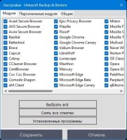 Один инструмент – множество программ Hekasoft Backup & Restore способен создавать резервные копии папок профилей основных браузеров, доступных для платформы Windows. Это действительно решение «всё в одном», закрывающее все потребности пользователя в резервном копировании. С каждым обновлением перечень поддерживаемых приложений расширяется, а актуальный полный список можно найти в программе. Если ваше любимое ПО отсутствует в списке, вы всегда можете связаться с разработчиками, и они добавят его в будущих версиях.