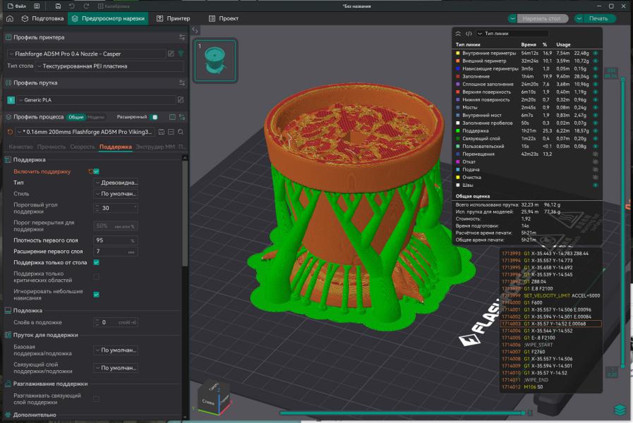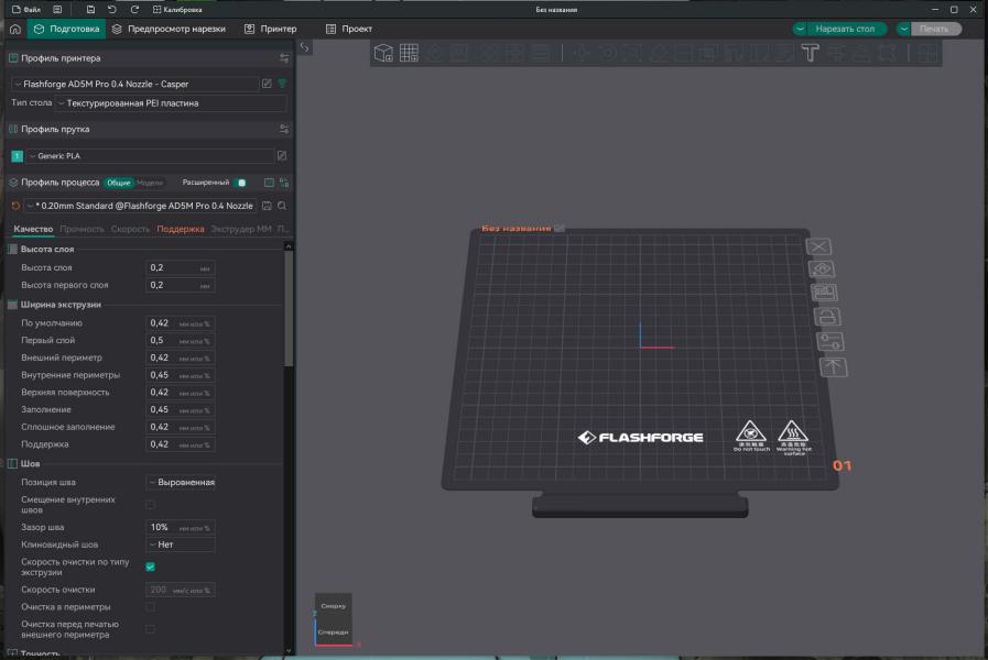 Поддержка множества профилей. Предустановленные шаблоны для популярных моделей принтеров (Creality, Anycubic, Prusa, Bambu, Artillery и др.) позволяют приступить к работе без сложной ручной настройки.