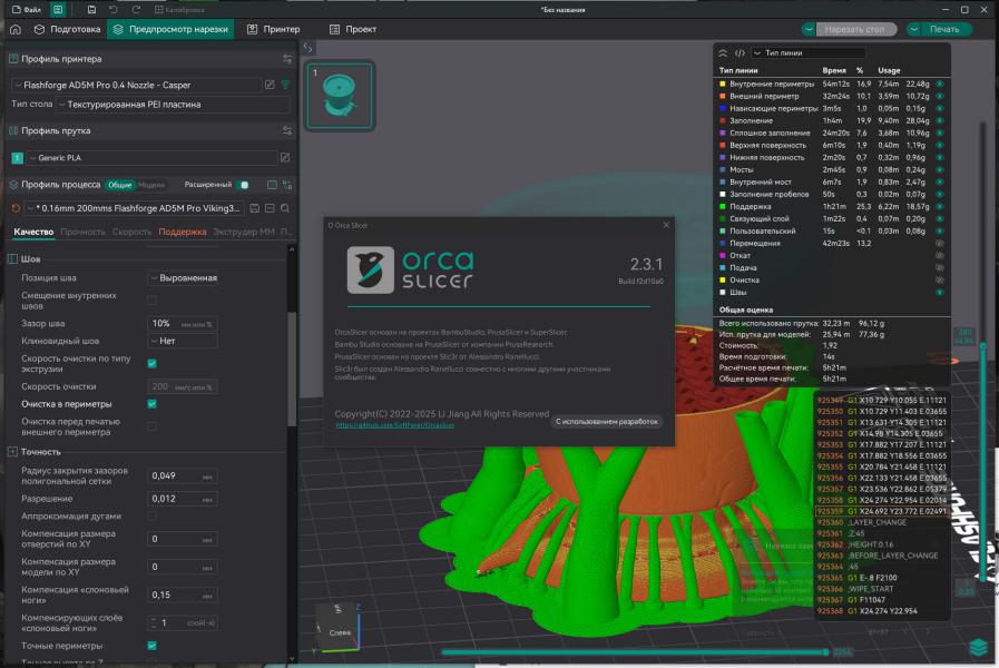 OrcaSlicer — это современный, продвинутый слайсер для 3D-печати, изначально созданный как форк популярного проекта Bambu Studio под названием BambuStudio-SoftFever. В настоящее время OrcaSlicer является самостоятельным проектом, активно развивающимся сообществом энтузиастов и инженеров.