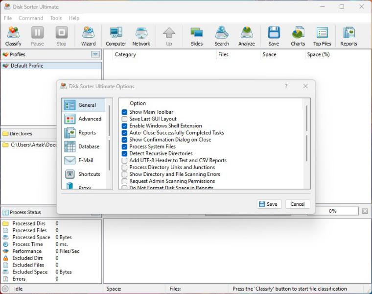 После завершения DiskSorter отобразит найденные ресурсы, предоставит возможность классифицировать файлы, строить графики, сохранять отчёты и выполнять анализ по множеству критериев.
