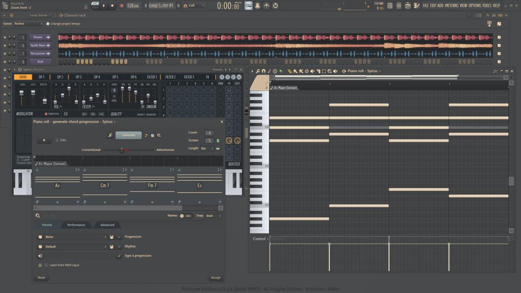 Начните идею мгновенно с помощью Loop Starter Абсолютно новый инструмент, позволяющий моментально запускать процесс написания трека. Интеграция с FL Cloud даёт возможность загружать готовые наборы лупов и сэмплов прямо в проект — без необходимости открывать браузер или переключаться между окнами. Достаточно выбрать стиль, и программа автоматически расставит ритмические и мелодические элементы в секвенсоре — трек готов к работе! Обновлённый микшер с динамической структурой Теперь количество треков в микшере полностью подстраивается под ваши нужды. Можно создавать до 500 каналов, добавлять и удалять дорожки на лету, а интерфейс автоматически адаптируется под ваш проект. Идеальное решение как для сложных оркестровых аранжировок, так и для минималистичных битов. Gopher — ваш умный ассистент по музыкальному продакшну Встроенный помощник, основанный на искусственном интеллекте, способен отвечать на вопросы о функциях FL Studio, подсказывать советы по саунд-дизайну и давать рекомендации по миксу. Работает на разных языках и постоянно обучается у профессионалов индустрии. Emphasis — мощный и прозрачный мастеринг-лимитер Новый лимитер с интеллектуальной системой управления динамикой позволяет добиваться громкого, но чистого звука. Простое управление, максимальная детализация, мгновенный результат — идеально подходит для финального этапа продакшна. FL Mobile инструменты теперь доступны на ПК Разработчики перенесли семь инструментов и двадцать девять эффектов из мобильной версии FL Studio. Среди них: Minisynth, Tape Stop, Wow & Flutter и другие. Они работают стабильно, потребляют минимум ресурсов и совместимы со всеми версиями программы. Автоматическая генерация басовых линий Инструмент Chord Progression Tool получил новый режим Bassline, который анализирует ваши аккорды и создаёт к ним гармоничные басовые партии. Это ускоряет процесс написания музыки и помогает находить неожиданные решения. Расширенное редактирование аудио-клипов Теперь можно растягивать, менять высоту тона и реверсировать каждый клип отдельно прямо в панели свойств. Используйте Alt или Cmd + двойной щелчок для мгновенного доступа. Все изменения производятся в реальном времени и не требуют перерендеринга.