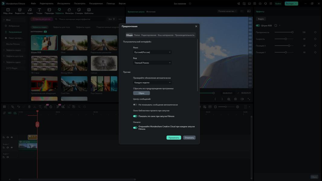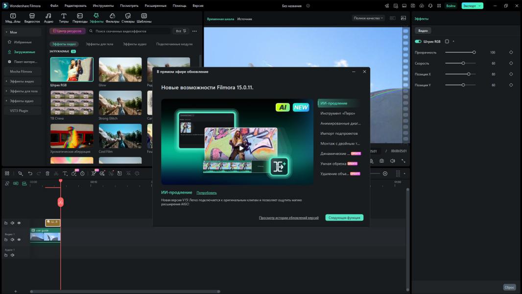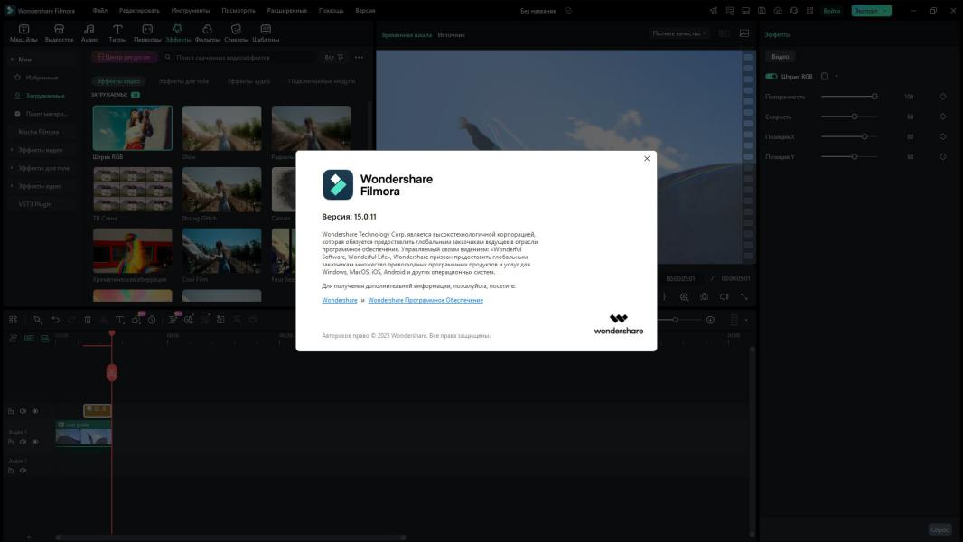 Wondershare Filmora — это современный видеоредактор, который сочетает в себе удобный интерфейс и полный набор профессиональных инструментов, позволяя создавать качественные видеоролики даже тем, кто никогда не занимался монтажом. В программе можно добавить титры, применять фильтры, использовать плавные переходы, улучшать звук, а затем экспортировать проект на YouTube, сохранить его для мобильных устройств или записать на DVD. У Filmora высокая скорость работы, богатая библиотека ресурсов и расширенные функции, основанные на ИИ, которые помогают создавать по-настоящему выразительный видеоконтент.