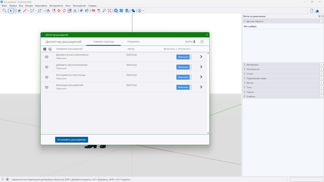 SketchUp Pro — профессиональная версия приложения для создания, редактирования и презентации трёхмерных моделей. Программа подходит для проектирования архитектурных объектов, образовательных целей, разработки моделей для Google Earth и других сфер, где требуются 3D-визуализации. Интуитивные инструменты и интеллектуальная система рисования позволяют легко создавать модели, экспортировать их в различные форматы, формировать видеопрезентации или распечатывать результаты работы. Вместо ручного ввода координат можно пользоваться системой управления объектами с помощью меток, цветовых линий и текстовых подсказок. Использование инструментов максимально приближено к реальности, что облегчает обучение и запоминание функционала.