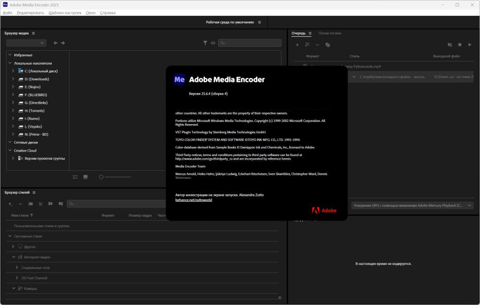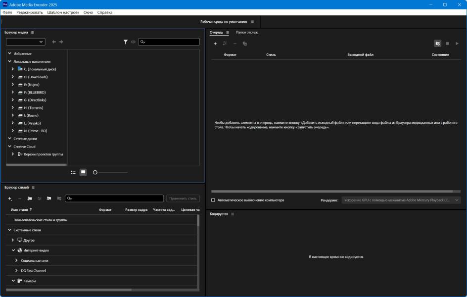 Adobe Media Encoder 2025 — это профессиональный инструмент для кодирования и преобразования аудио- и видеоматериалов в широкий спектр форматов, используемых для публикации и воспроизведения на различных устройствах. Программа обеспечивает оптимальное сжатие файлов без потери качества, что делает её незаменимой при подготовке контента для телевидения, онлайн-платформ, мобильных устройств, Blu-ray и потоковых сервисов.