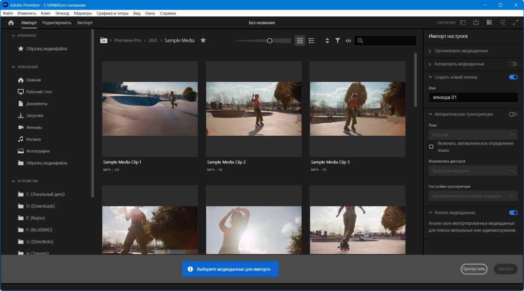 Adobe Premiere Pro — это мощный, универсальный и продуманный инструмент для нелинейного видеомонтажа, ориентированный как на профессионалов, так и на требовательных энтузиастов. Программа позволяет загружать, совмещать и обрабатывать практически любые типы медиаконтента — от роликов, снятых на смартфон, до видеоматериалов сверхвысокого разрешения уровня 5K и выше. Монтаж выполняется напрямую в исходных форматах, без обязательного перекодирования, что экономит время и сохраняет максимальное качество изображения.