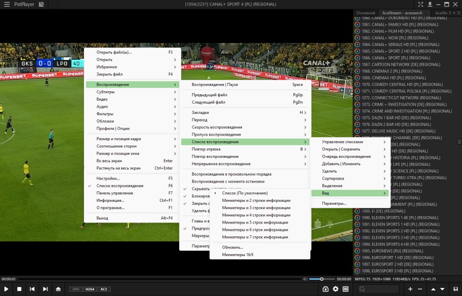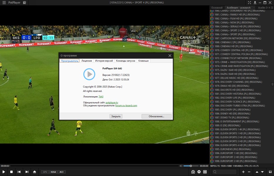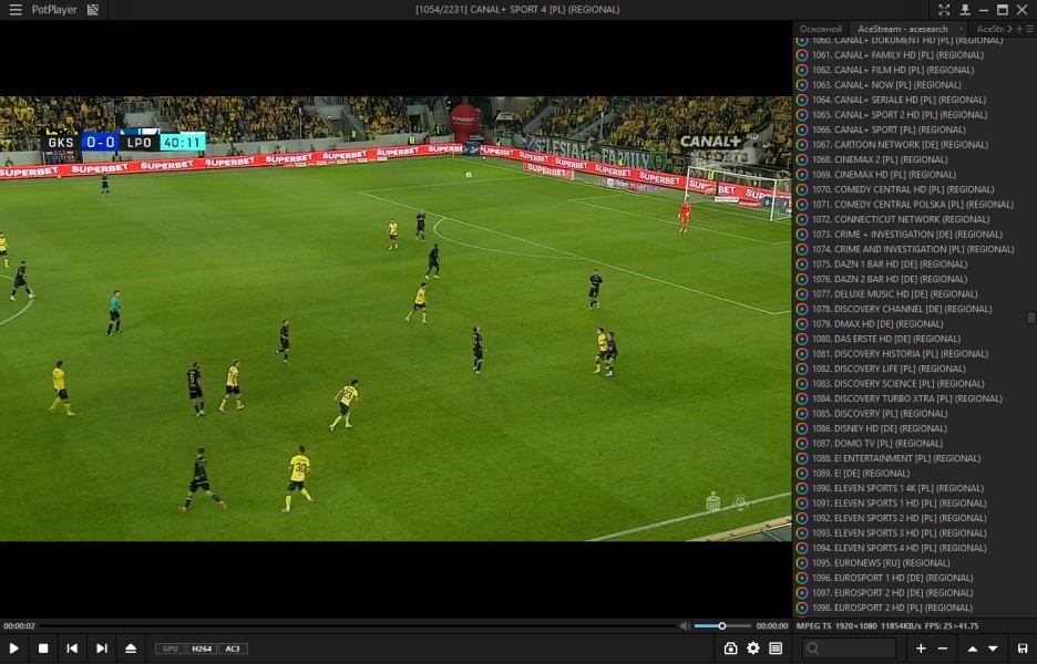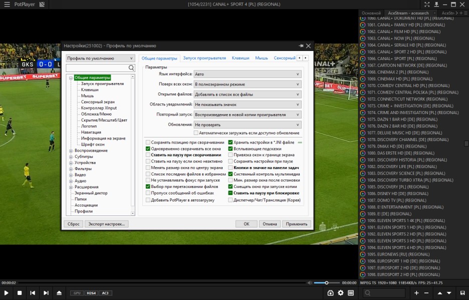 - Запускает движок ace_engine и через 2–3 секунды PotPlayer