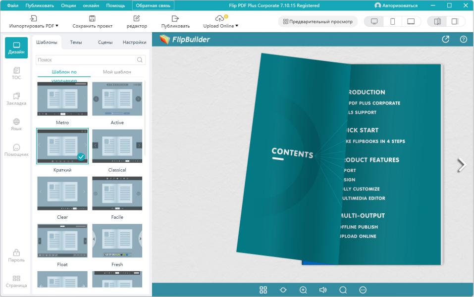 Flip PDF Plus Corporate — это расширенная корпоративная версия нашего мощного программного решения для создания интерактивных публикаций. Данный инструмент позволяет мгновенно преобразовывать статические PDF-документы в эффектные цифровые издания с реалистичной анимацией перелистывания страниц и живым звуковым сопровождением. Благодаря Flip PDF Plus Corporate вы получаете возможность легко создавать цифровые журналы, каталоги и брошюры, которые выглядят и воспринимаются как настоящие печатные книги, при этом не требуется обладать никакими специальными навыками в области программирования или веб-дизайна! Программа дает вам полную свободу в создании уникальных изданий, где гармонично сочетаются текст, графические элементы и мультимедиа, как в классическом документе. Готовый проект всегда можно дополнительно отредактировать, обогатив его новыми яркими эффектами и деталями. Интуитивно понятный интерфейс приложения делает процесс настройки простым и быстрым.