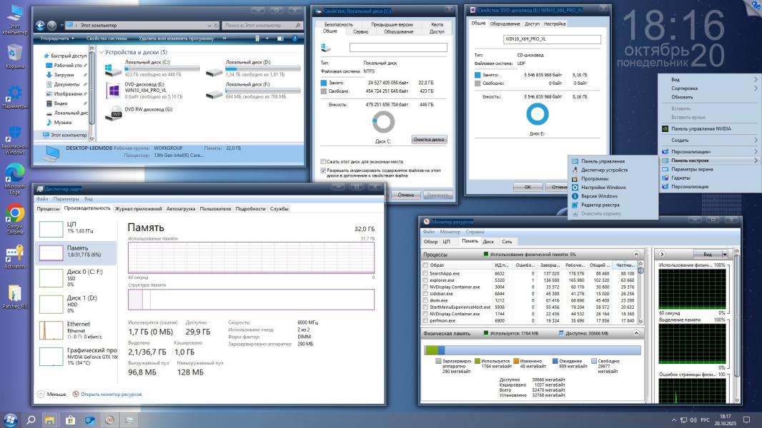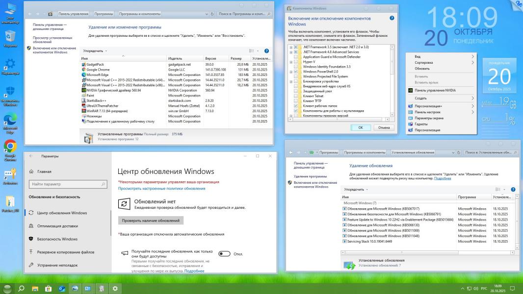 - Полный пакет накопительных исправлений ОС по состоянию на 14 октября 2025 года; - Платформа .NetFramework 4.8.1 со всеми последними патчами по октябрь 2025 года; - Набор расширенных тем, обоев рабочего стола, утилит и профильных иконок.