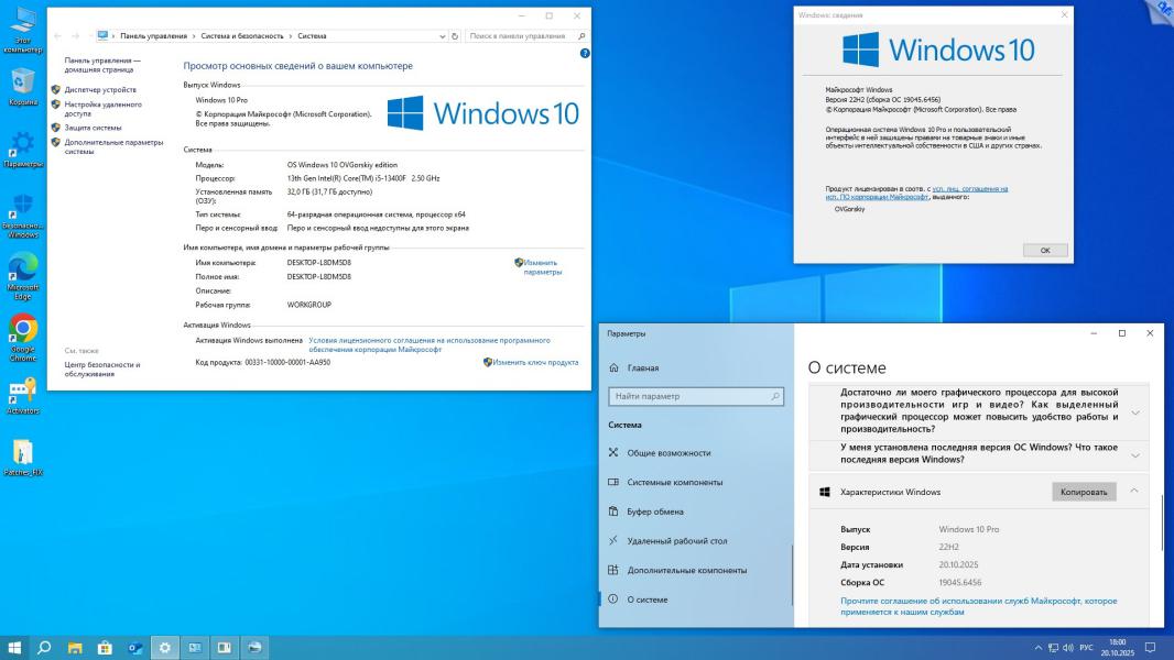 Windows 10 Professional VL x64 22H2 RU by OVGorskiy 10.2025