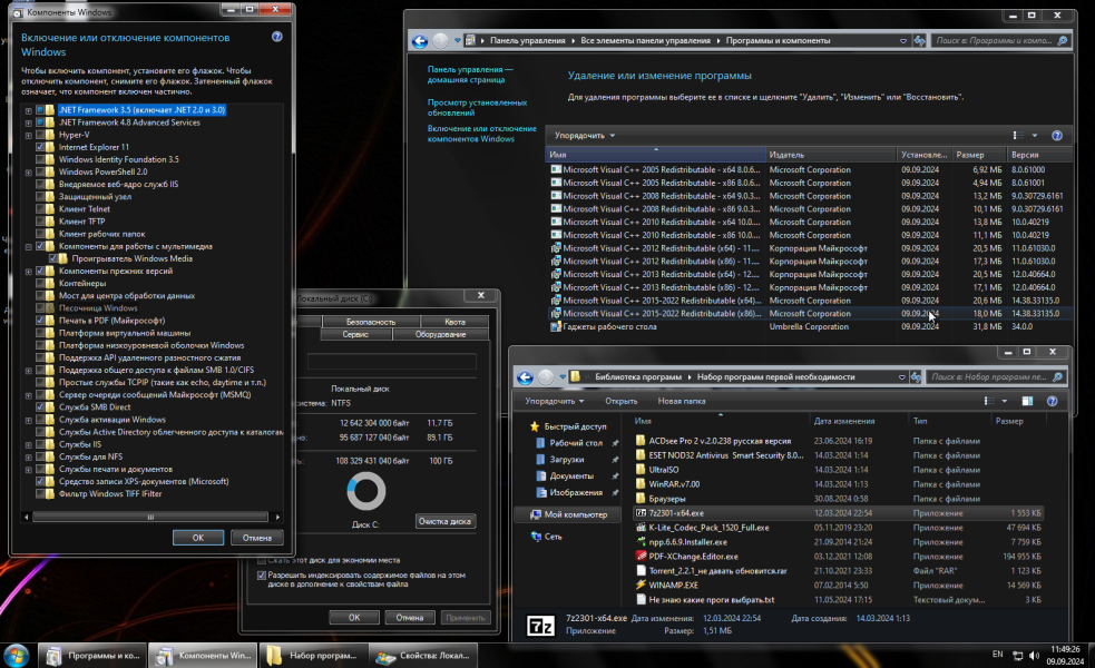 Предварительно скачайте все необходимые драйверы, так как их автоматическое скачивание отключено. Сразу после установки может отсутствовать интернет. Вам нужно установить драйверы, соответствующие вашему оборудованию. Основной принцип сборки: пользователь управляет компьютером, а не наоборот.