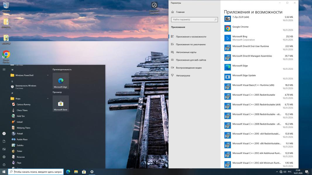 Сборка выполнена на базе оригинальных пакетов UUP без изменения исходной архитектуры системы. Компоненты удалённого рабочего стола сохранены, при этом Microsoft OneDrive полностью исключён. В установочный образ заранее внедрены DirectX версии 9.0 и архиватор 7-ZIP. Процедура установки реализована в полуавтоматическом режиме, что упрощает развертывание системы и снижает количество ручных действий со стороны пользователя.