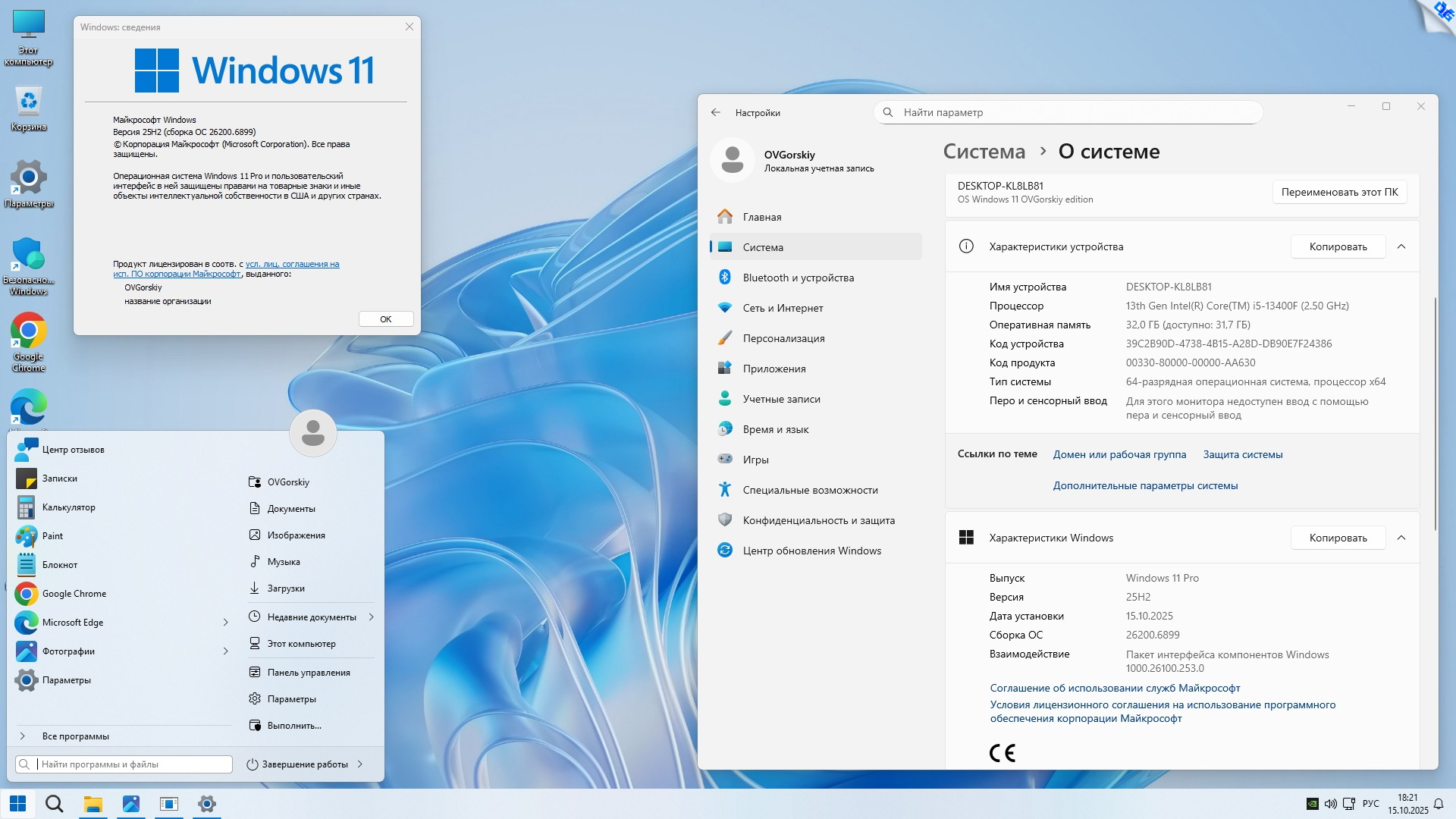 Название операционной системы: Microsoft® Windows® 11 Professional VL (Профессиональная) Версия системы: 10.0 build 26200 (25H2) 2025 Release (10.0.26200.6899). Канал распространения: Volume License (VL). Язык интерфейса: Русский (Russian). Разрядность: 64 бит (x64). Активация: Требуется, средства лечения присутствуют. Методы активации: KMS активатор, VLK (Volume License Key). Дата выпуска сборки: Октябрь 2025 г. Сборка базируется на официальном образе MICROSOFT MSDN (Version 25H2 Build 26200 2025 Release): ru-ru_windows_11_business_editions_version_25h2_x64_dvd_d07f6151.iso.