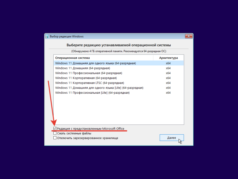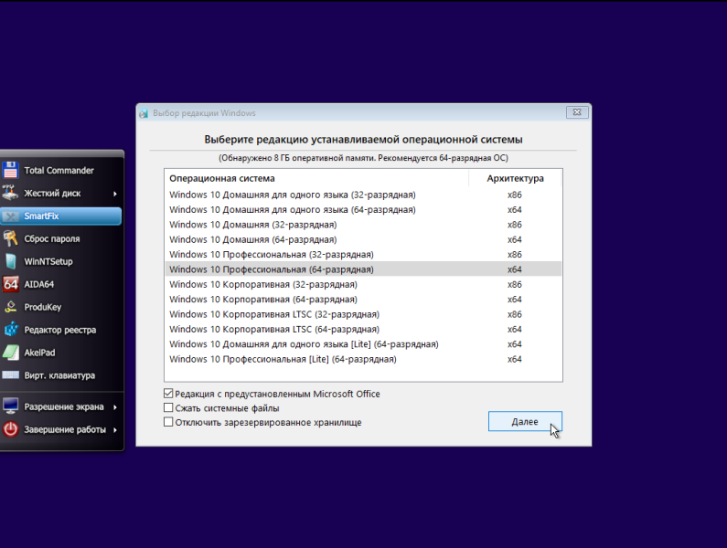 В меню выбора редакций Windows, нажмите правой кнопкой мыши по кнопке "Далее".
