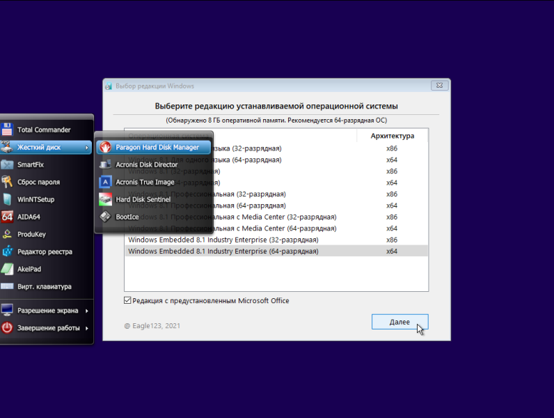 ● WinPE 8x64 Special Edition 2k10 — 64-битная версия с улучшенной совместимостью и современными драйверами.