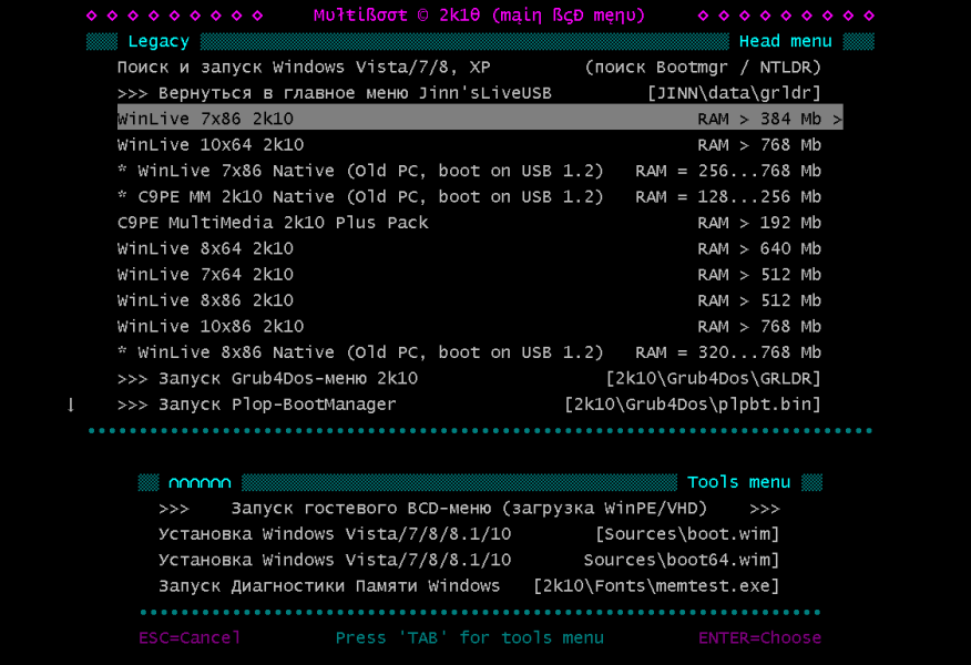 Jinn'sLiveUSB – это многофункциональный инструмент для создания мультизагрузочного накопителя USB, который предназначен для установки операционных систем Windows, а также для диагностики аппаратного обеспечения и устранения различных системных неисправностей. Этот конструктор объединяет в себе обширный набор программных продуктов, функционирующих под единой управляющей оболочкой, обеспечивая при этом возможность загрузки как в режиме BIOS (Legacy), так и в UEFI.