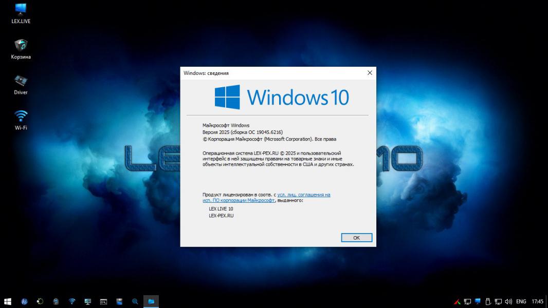 Система основана на Windows 10 Build 19045.6216 и полностью оптимизирована для стабильной работы на любых конфигурациях.