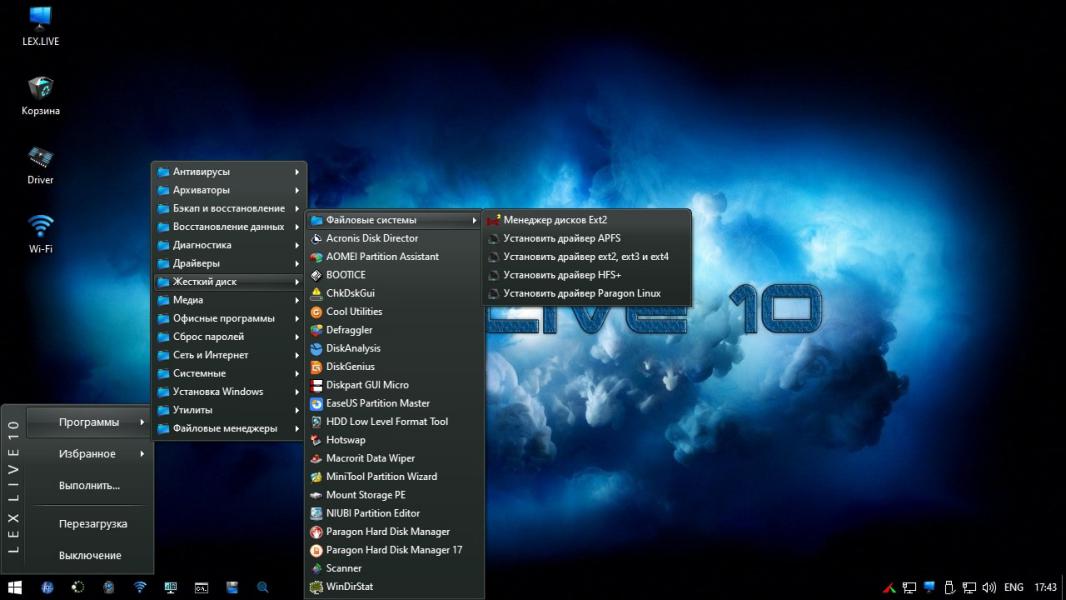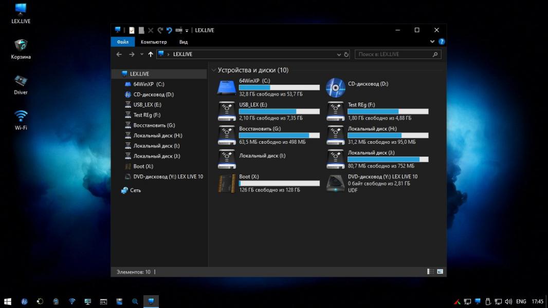LEX LIVE 10 не имеет отношения к сторонним сборкам Windows PE. Все компоненты взяты из открытых источников, и аналогичную систему можно создать самостоятельно через Win10XPE — никаких специальных навыков для этого не требуется.