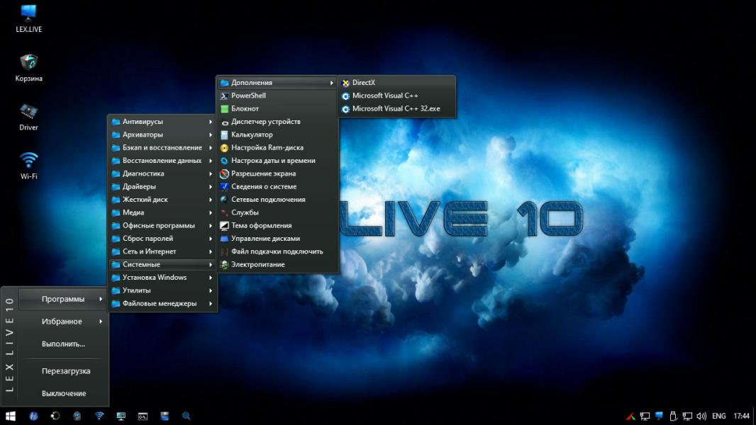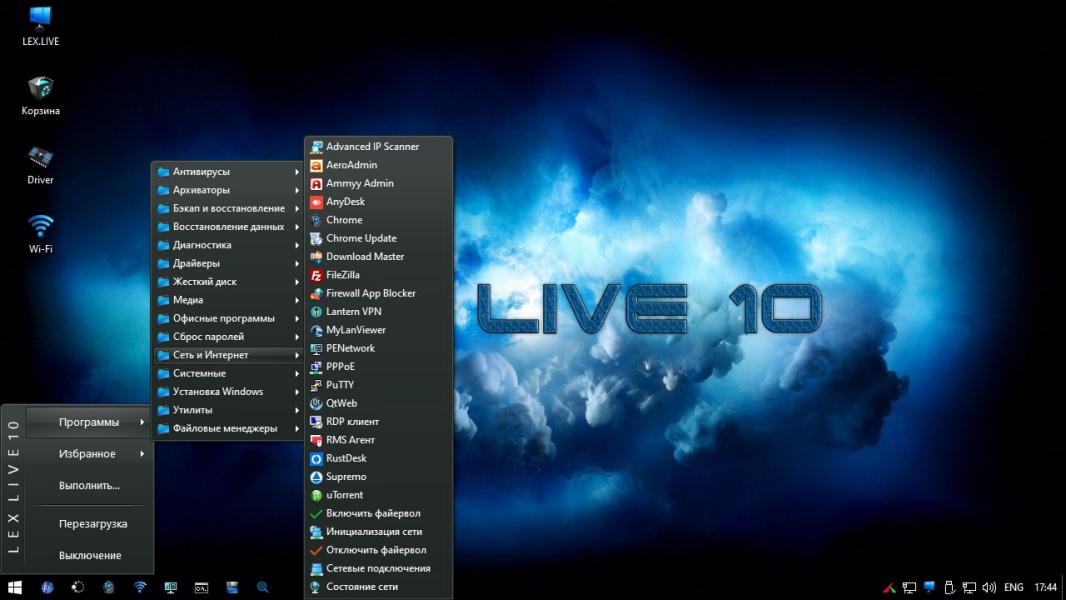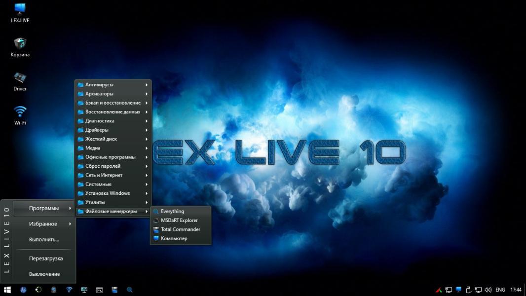 LEX LIVE 10 — это современная портативная операционная система, предназначенная для работы, выхода в интернет, диагностики и восстановления компьютеров. Система запускается напрямую с USB-носителя и полностью функционирует в оперативной памяти вашего ПК. Благодаря этому LEX LIVE 10 способна работать даже на компьютерах с повреждённым или отсутствующим жёстким диском.