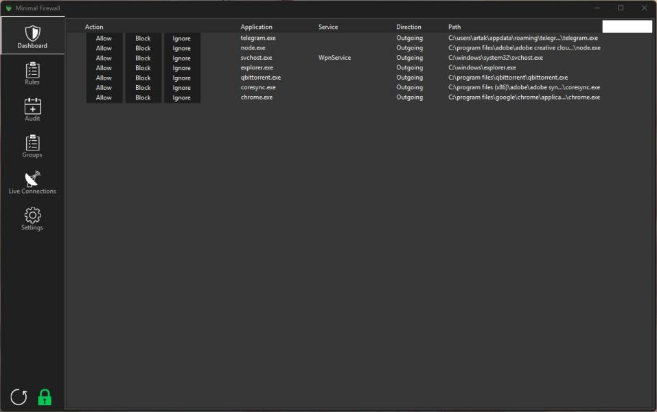 Minimal Firewall — это лёгкий, портативный интерфейс к системному брандмауэру Windows, созданный для пользователей, которые хотят получать точные уведомления о сетевых подключениях без вмешательства в ядро операционной системы или отключения его изоляции. Он сохраняет оптимальный баланс между безопасностью, обеспечиваемой Windows Defender, и гибкостью, присущей инструментам уровня Simplewall.