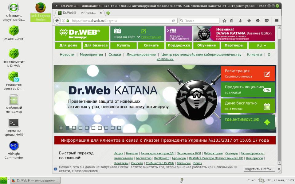 Dr.Web Updater Ежедневно появляются новые разновидности компьютерных угроз, обладающие всё более совершенными методами сокрытия. Регулярное обновление вирусных баз обеспечивает соответствие уровня защиты актуальным требованиям и готовность системы к отражению новых атак. Обновление осуществляется с помощью специализированной утилиты Dr.Web Updater.