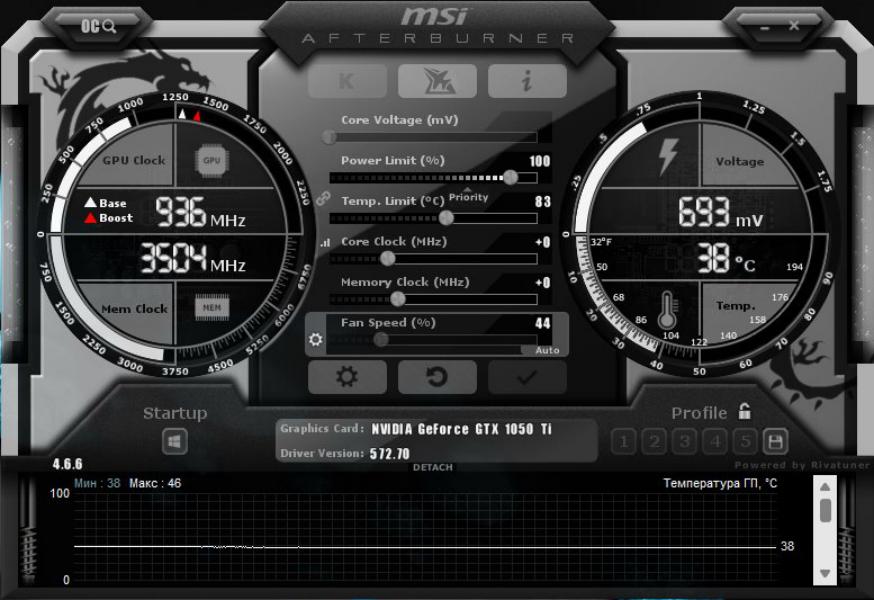 MSI Afterburner — это мощная и гибкая утилита для тонкой настройки и разгона графических ускорителей любых брендов. Программа позволяет изменять рабочие частоты GPU, шейдерного блока и видеопамяти, управлять скоростью вращения кулеров, регулировать напряжения питания и выполнять множество других действий, направленных на повышение производительности. Полная совместимость обеспечена со всеми версиями Windows архитектур x86 и x64. Утилита предлагает широкий набор инструментов мониторинга, обладает функциями сохранения профилей, поддерживает «горячие клавиши» и предоставляет удобный интерфейс для контроля каждого разогнанного параметра.