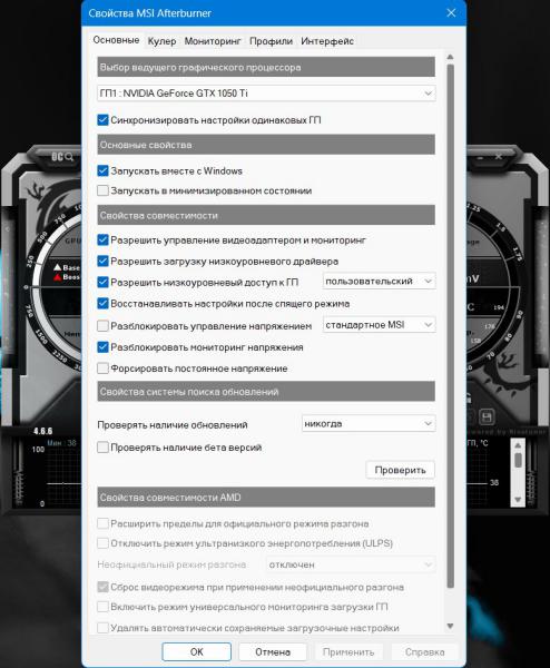 MSI Afterburner оснащён расширенным режимом, обеспечивающим работу не только с картами MSI, но и с продуктами AMD Radeon. В этом режиме становятся доступны дополнительные параметры, включая регулировку напряжений GPU и памяти. Приложение автоматически фиксирует переходы между 2D- и 3D-режимами и позволяет мгновенно менять параметры за счёт профилей, избавляя от необходимости вручную корректировать настройки каждый раз.