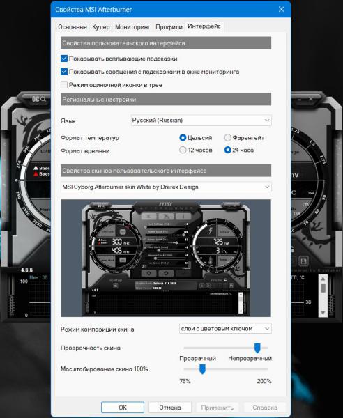 В приложении по умолчанию установлен скин MSI Windows 11 Dark. Поддержка Quad Fan Control доступна в тёмной и светлой версиях этого скина. При использовании старых тем возможна синхронная регулировка всех вентиляторов через +.