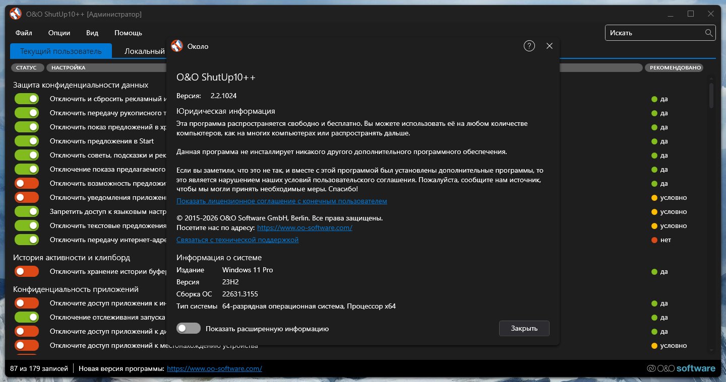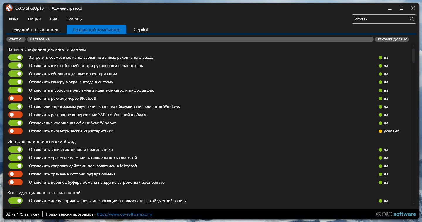 W10Privacy — это удобный и мощный инструмент для управления параметрами конфиденциальности и безопасности в Windows 10. С его помощью можно тонко настроить систему, минимизировать сбор личных данных и контролировать работу встроенных служб Microsoft. Программа создана для пользователей, желающих вернуть себе контроль над ОС, отключив нежелательные функции телеметрии, рекламы, отслеживания активности и синхронизации.